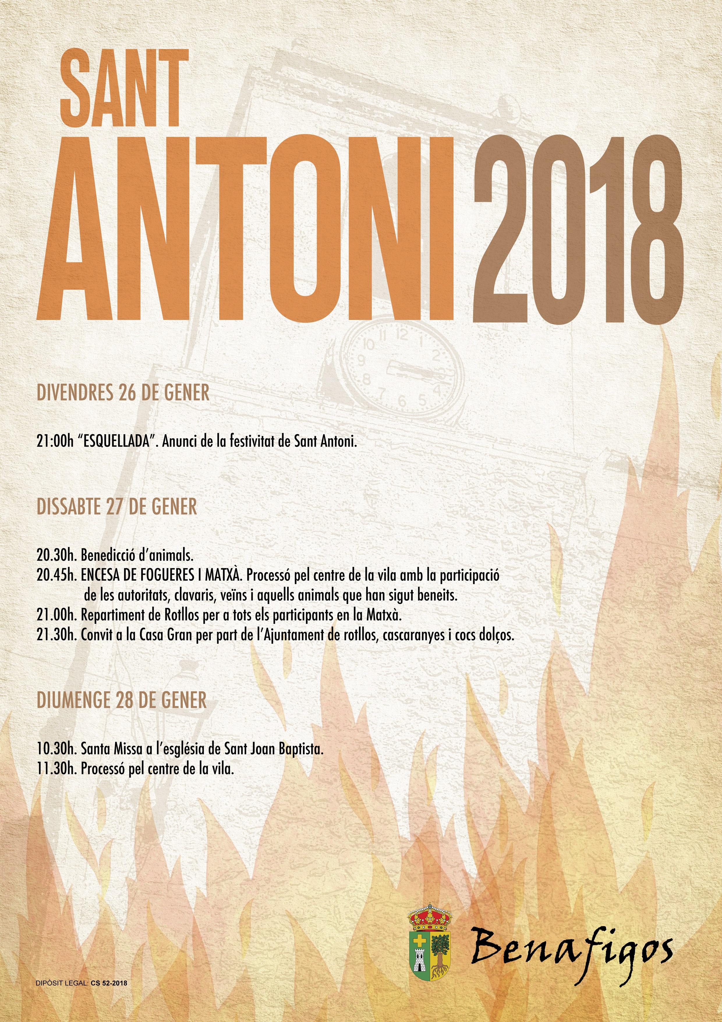 Benafigos: Fiesta de Sant Antoni, 26 a 28 enero 2018 Benafigos